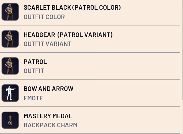 • “Scarlet Black (Patrol Color)” Outfit Color