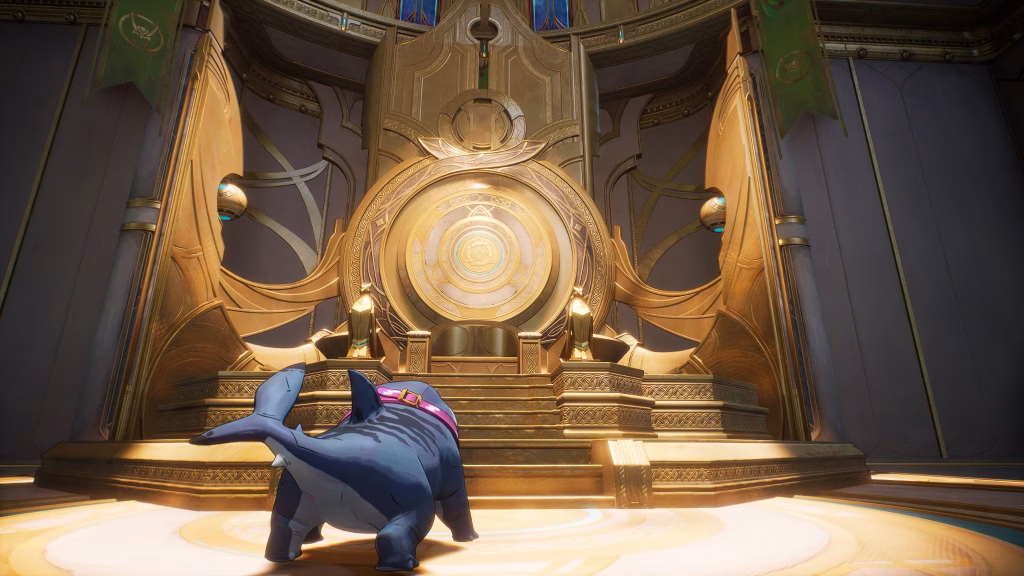 • Step 4: Navigate up the stairs and onto the raised platform where the throne is located.